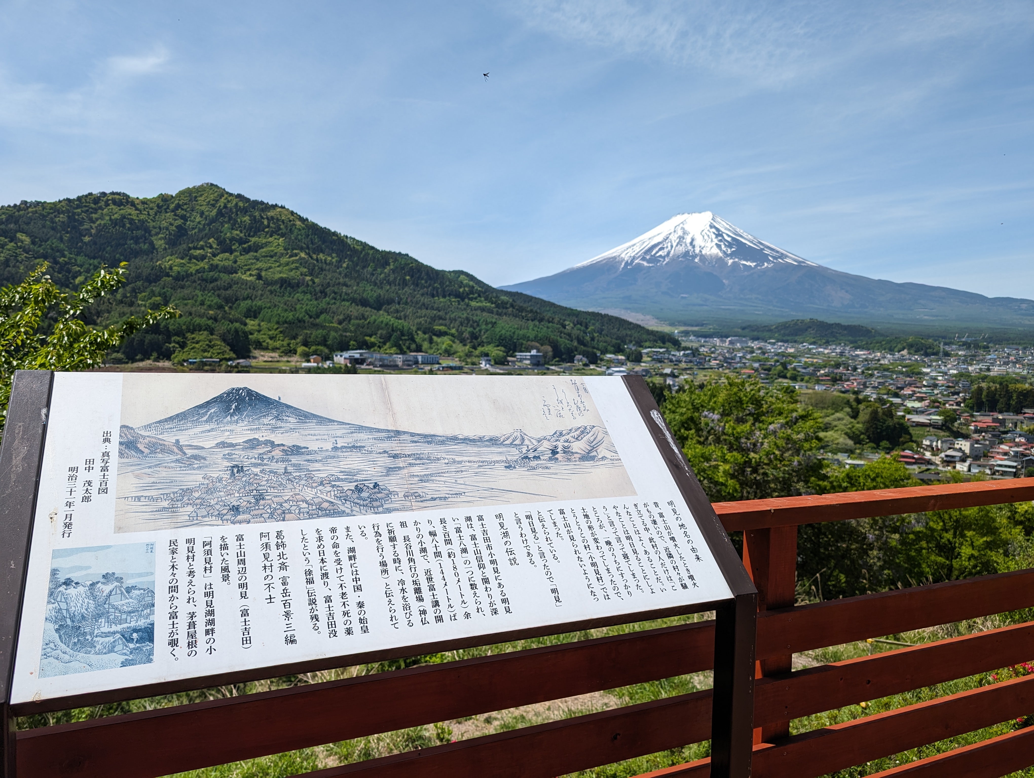富士八海の一つ。明見湖~背戸山へ。2020年に完成の展望台からは迫力ある富士山を一望。