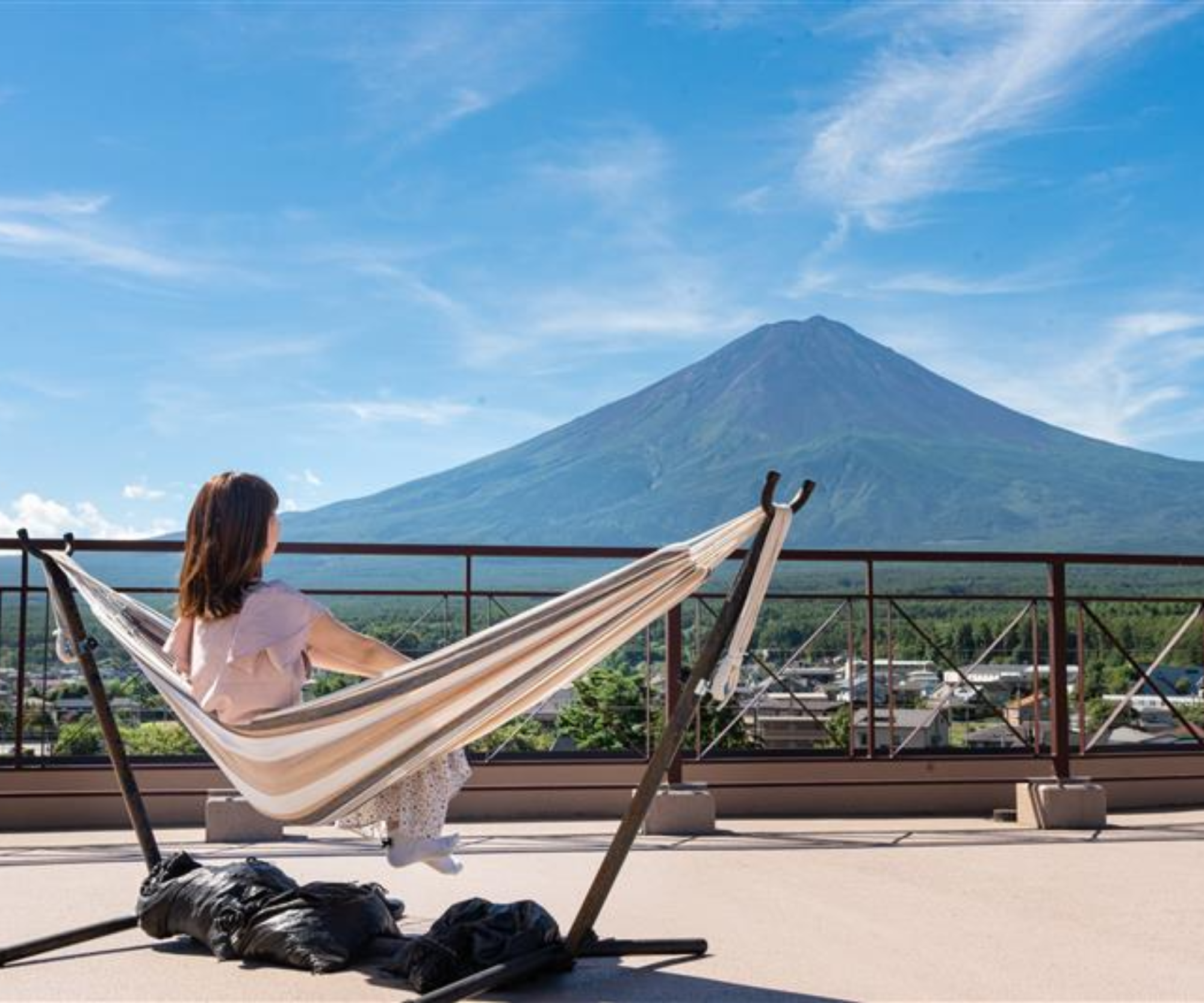 ふじさんデッキは、ハーブ庭園旅日記富士河口湖庭園内にある富士山・河口湖・庭園を一望できる高さ13メートルの展望台です。眺めはお客様の旅の思い出の1ページとなること間違いなし!2階には、ごゆるりとお茶とスイーツが楽しめる「ふじパノラマカフェ」もございます。