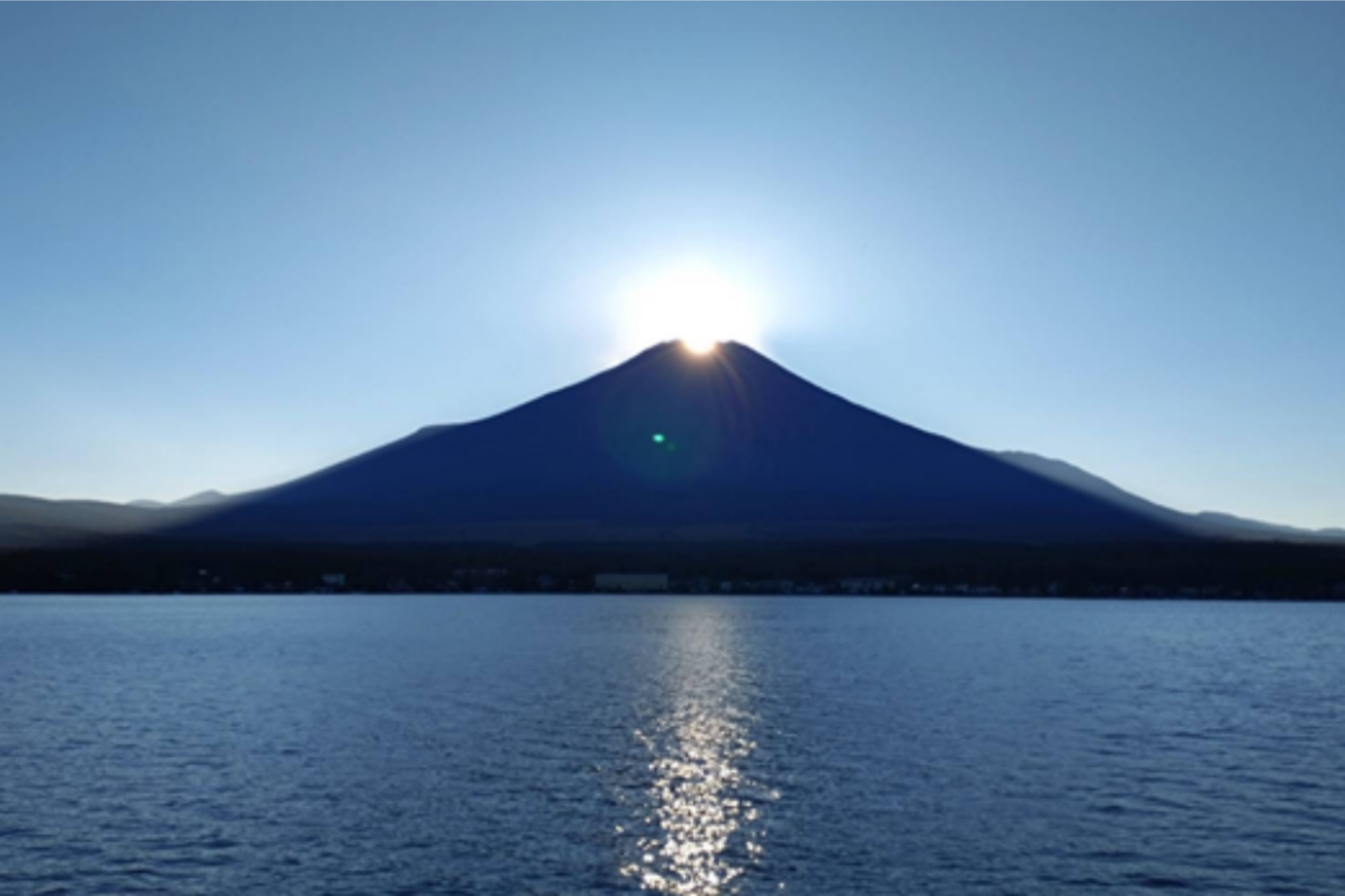 山中湖では、10月中旬から2月末の日没の時間に「ダイヤモンド富士」が見られます。そこで2026年2月23日(月)ふじさんの日に、ダイヤモンド富士を鑑賞する山中湖遊覧船「白鳥の湖」を運航します!(16:00出航・20分間 ※天候状況によりご覧いただけない場合もあります。)